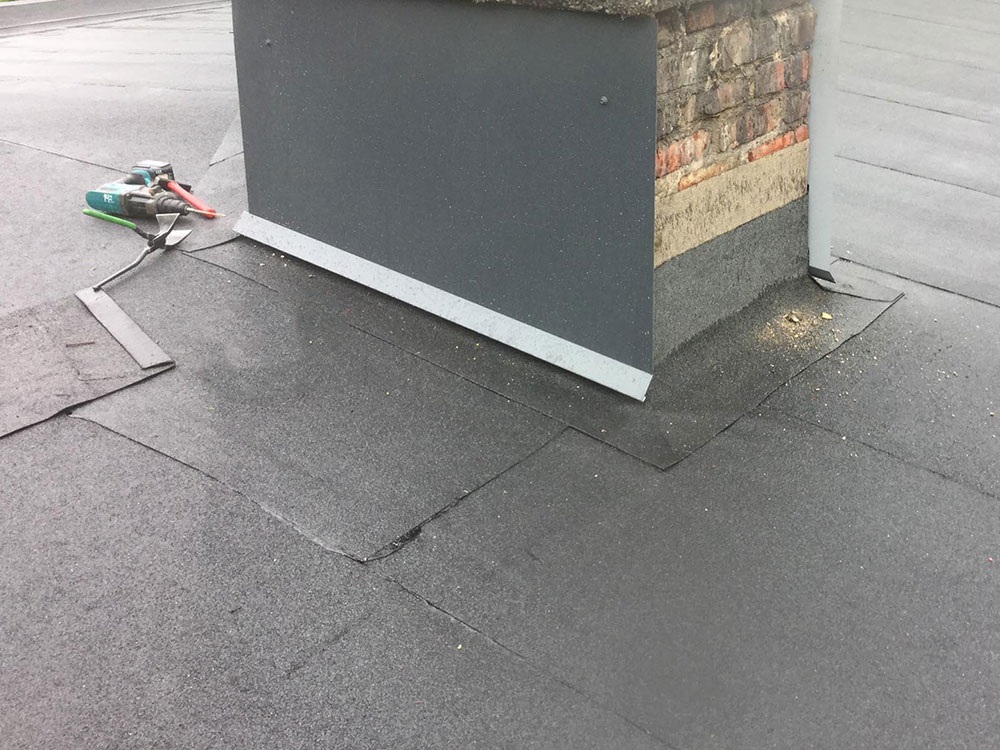 - Ammattitaitoinen huopakaton korjaus savupiipun ja piipun juuren kohdalta.