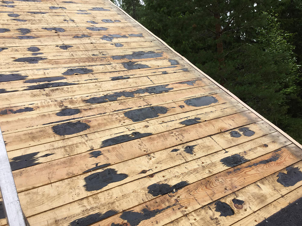 Huopakerrosten ja virheellisten kiinnikkeiden poistamisen jälkeen on aika tarkastaa katon alapuoliset osat sekä suorittaa mahdollisesti tarvitut puutyöt. Onneksi tiimiimme kuuluu myös kirvesmiehiä, jotka osaavat kunnostaa ja uusia niin alusponttilaudoituksen, katelevytyksen kuin kattoristikotkin. Tarvittaessa uusimme myös eristeet.