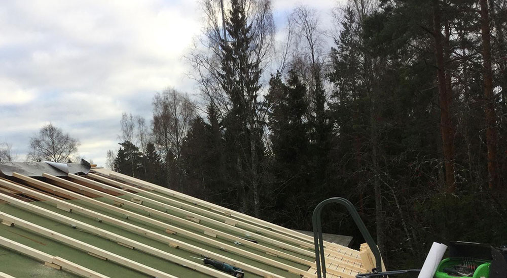 Jos katon mallia ollaan muokkaamassa, rakennamme purkutöiden jälkeen katon uuden mallin kattotuolien avulla. Muuten tässä vaiheessa suoritamme yläpohjaan ja kattorakenteisiin kohdistuvat kunnostustyöt ja sitten etenemme ruoteisiin, aluskatteeseen, vesikatteeseen, läpivienteihin sekä katon viimeistelyyn kattotuotteiden asennuksilla. Kun kaikki on valmista, siivoamme työmaan ja keräämme suojaukset sekä kuskaamme syntyneet jätteet asianmukaiseen jatkokäsittelyyn.