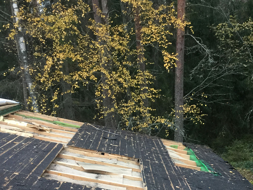 - Kesämökin katon myrskyvaurioiden korjaus edustaa ydinosaamistamme