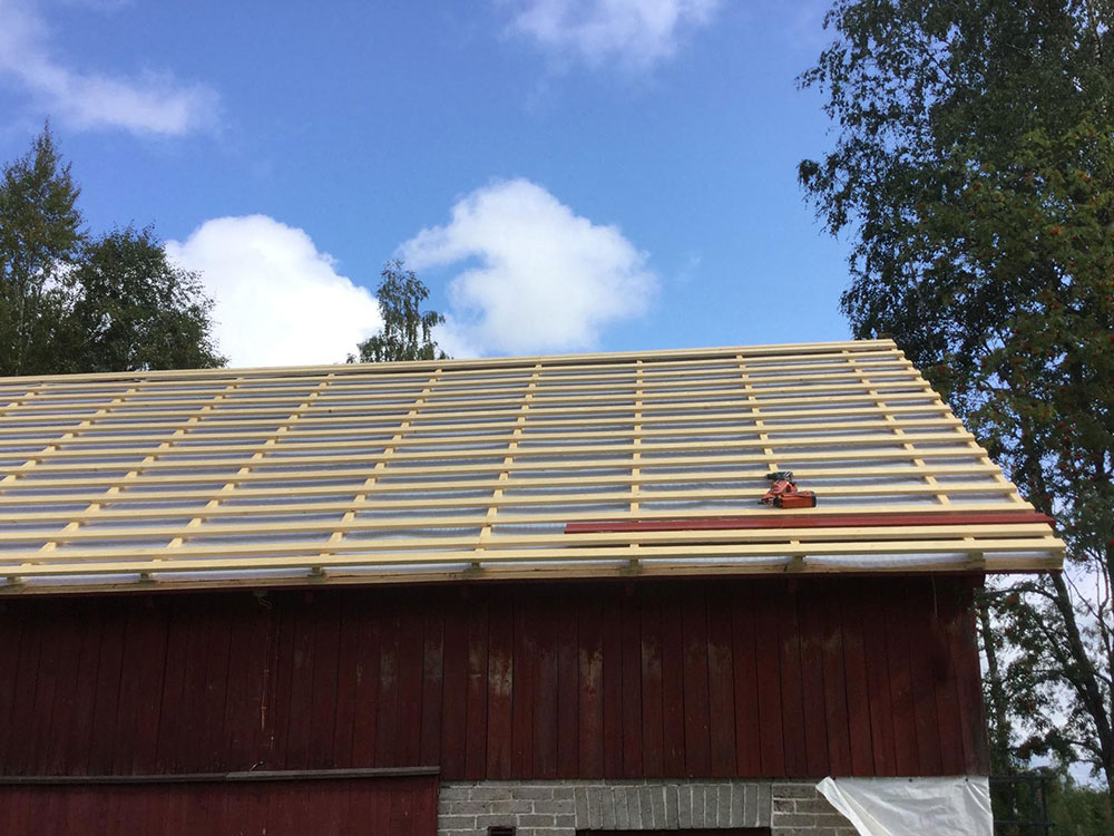Uusi peltikatto navettaan ja maneesiin kaikilla herkuilla