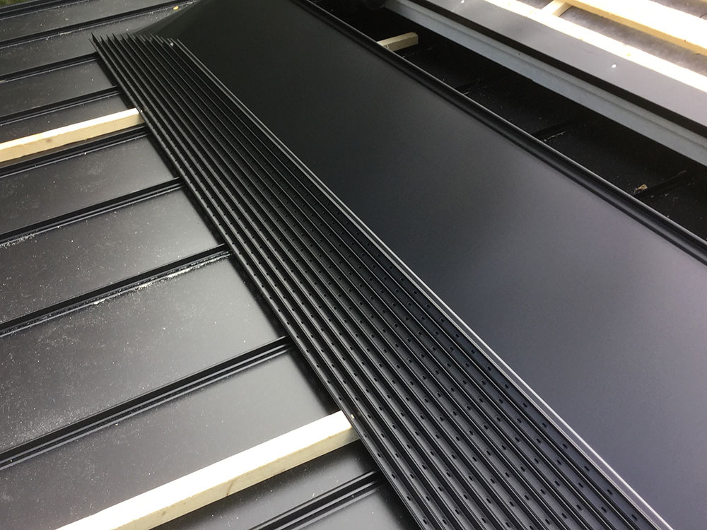 Miten sitten huomioimme uuden katon tiiviyden, toimivuuden ja turvallisuuden, kun remontoimme Poimukate peltikatot? Tiiviys taataan ensinnäkin asentamalla peltikatteen alle aluskate. Peltikate on yksi niin sanotuista epäjatkuvista katteista, joten parhaimmatkaan ammattilaiset eivät saa siitä sataprosenttisen vedenpitävää – se ei yksinkertaisesti ole mahdollista. Kattokokonaisuuden kyky pitää vettä varmistetaan oikein asennetulla aluskatteella, mikä on täysin vesitiivis. Sen tehtävä on ohjata esimerkiksi sisätaitteen kohdalta sisälle tihkuvat vedet heti pois katon alta. Aluskatetta ei kuitenkaan kannata kuormittaa liikaa. Siksi panostamme myös vesikatteen ja etenkin kaikkien läpivientien asennukseen. Esimerkiksi kattoikkunan tiiviys varmistetaan käyttämällä nimenomaan peltikatolle suunnattua kattoikkunan asennussarjaa ja piipunjuuren tiiviys suorittamalla piipun pellitys.